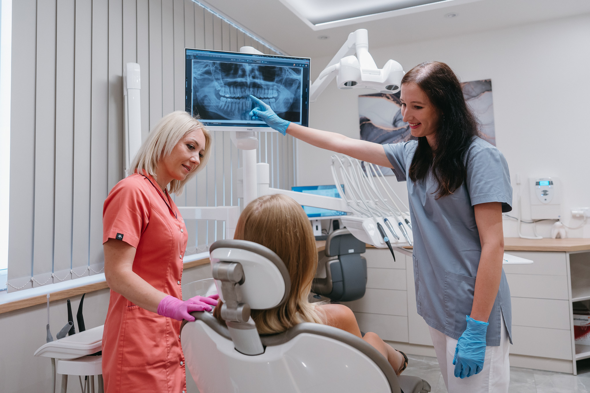 Na naší klinice máme k dispozici moderní rentgenové přístroje přímo na místě, což umožňuje rychlé a přesné diagnostické zobrazení bez nutnosti návštěvy jiného pracoviště. Zhotovujeme ortopanoramatické snímky (OPG), intraorální snímky a v případě potřeby nabízíme i 3D snímkování, které se využívá například při navigované implantaci pro přesnější a bezpečnější umístění implantátů.
